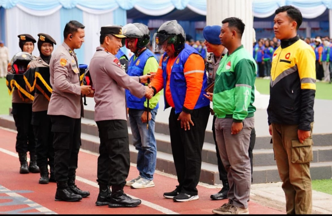 TARASJABARI.ID- Lima Ribuan ojeg online mengikuti apel besar di Soreang Kabupaten Bandung.Sabtu 11 November 2025.