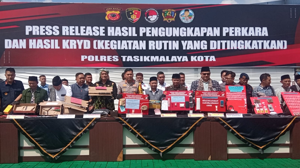 TERASJABAR.ID – Polresta Tasikmalaya menggelar konferensi pers pengungkapan kasus dan kegiatan rutin yang ditingkatkan(KRYD) selama satu bulan, Kegiatan Konferensi Pers mengundang Wakil Walikota Tasikmalaya, Forkopimda dan Elemen Masyarakat dalam memelihara Situasi Kamtibmas, Kamis (12/2/2026).