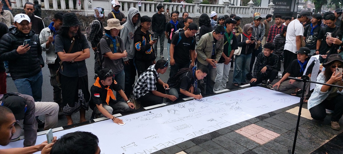 Aksi tersebut ditandai Penandatanganan Petisi Kawasan Konservasi menjaga integritas TNGC dan penolakan intimidasi terhadap salah seorang aktivis lingkungan Bupati Dian Rachmat Yanuar mengawali tanda tangan, diikuti oleh Sekda Kusmana sejumlah pejabat terkait, Aktivis AKAR Maman Mazicue, Frenderik HR Amalo dan seluruh pegiat lingkungan.