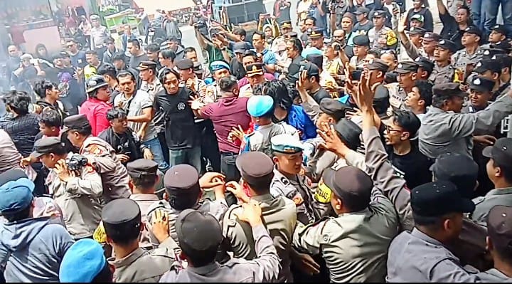 Aksi unjuk rasapun nyaris ricuh ketika puluhan mahasiswa mencoba menerobos penjagaan ketat aparat kepolisian di depan pintu gerbang DPRD. Bahkan beberapa aparat terkena pelemparan telur oleh pendemo. Aksi unjuk rasa ini ditandai pula pembakaran replika keranda dan ban bekas sebagai penanda protes.