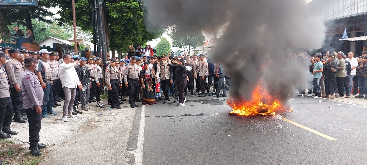 Aksi unjukrasa diawali atraksi debus. Lalu mereka membakar ban bekas di tengah jalan depan BTNGC. Kobaran api sebagai simbol protes panas berasap pekat. Sementara arus lalulintas pun praktis terganggu. Polantas pun sibuk mengurai arus kendaraan dari arah Kuningan dan Cirebon.