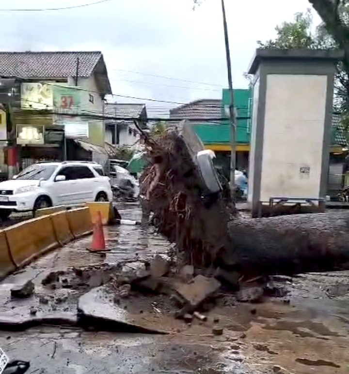 Beruntung kata Ahmad, pohon tumbang tak sepenuhnya ke jalan sehingga tak menimpa mobil, motor dan bangunan. Termasuk tak meminta korban.