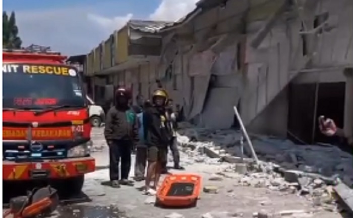 Saat ini petugas gabungan masih melakukan evakuasi terhadap puing-puing bangunan. Terlihat bagian dalam ruko masih bisa digunakan sedangkan di depan ruko banyak kendaraan yang tertimbun.