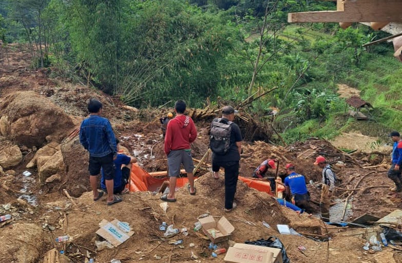 Pencarian terhadap 3 korban, yakni Aisyah (70), Citra (24) dan Alfa alias Arjuna (10) oleh sejumlah relawan dikawal BPBD Kab. Bandung tanpa tim SAR gabungan (Basarnas).