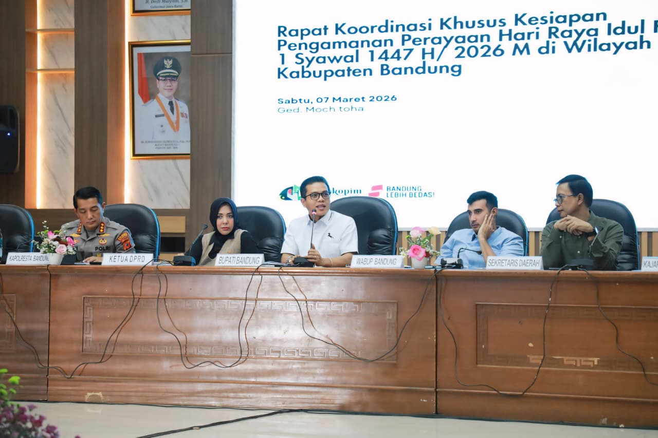 TERASJABAR.ID – Pemerintah Kabupaten (Pemkab) Bandung dan jajaran Forkopimda Kabupaten Bandung menggelar Rapat Koordinasi Khusus (Rakorsus) Pengamanan Hari Raya Idul Fitri 2026 atau Operasi Ketupat 2026 di Gedung Moh Toha, Sabtu (7/3/2026).