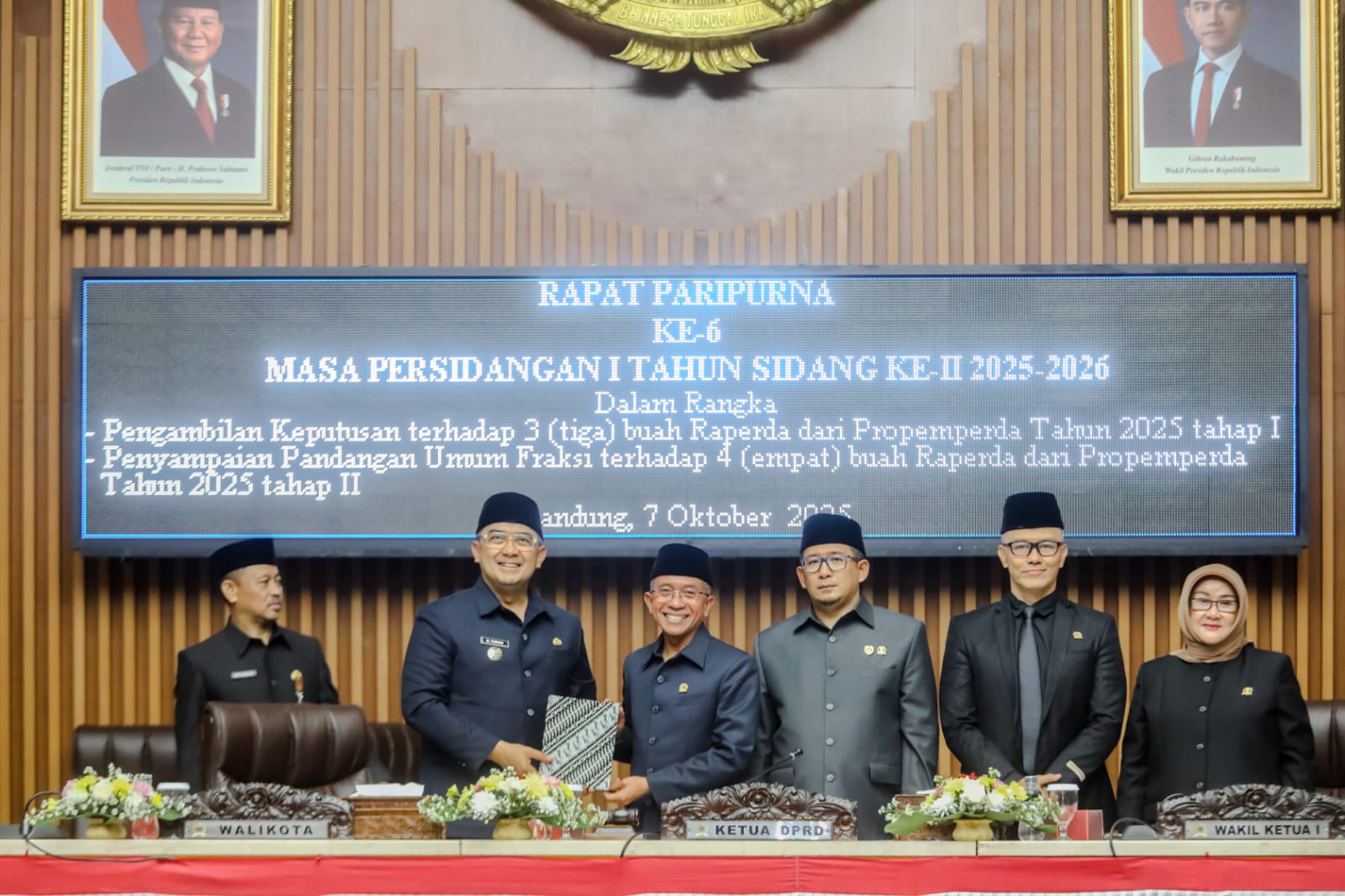 TERASJABAR.ID – Tiga rancangan peraturan daerah (Raperda) resmi disetujui oleh Dewan Perwakilan Rakyat Daerah (DPRD) Kota Bandung dalam Rapat Paripurna ke-6 Masa Persidangan II Tahun Sidang 2025–2026, di Ruang Rapat Paripurna DPRD Kota Bandung, Jalan Sukabumi, Selasa, 7 Oktober 2025.