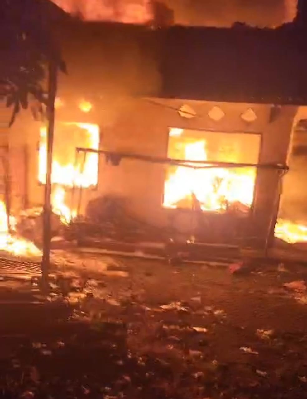 Terpantau kondisi gudang Plastik ludes terbakar dan hangus jadi abu. Sementara itu, kobaran api berhasil dipadamkan hingga tidak merembet ke rumah di sekitarnya.
