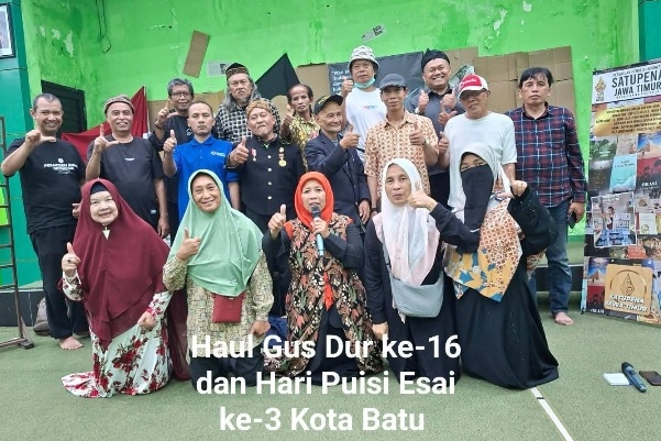 TERASJABAR. ID — Panitia Haul Gus Dur ke-16 yang dirangkai dengan Peringatan Hari Puisi Esai ke-3 menyampaikan terima kasih dan apresiasi kepada seluruh pihak yang telah hadir dan berpartisipasi dalam kegiatan bertajuk “Sastra Masyarakat dan Memasyarakatkan Sastra”, yang berlangsung 12 jam nonstop, Jumat Legi, 9 Januari 2026, di Aula Mbah Hasyim Asy’ari, Gedung PCNU Kota Batu.