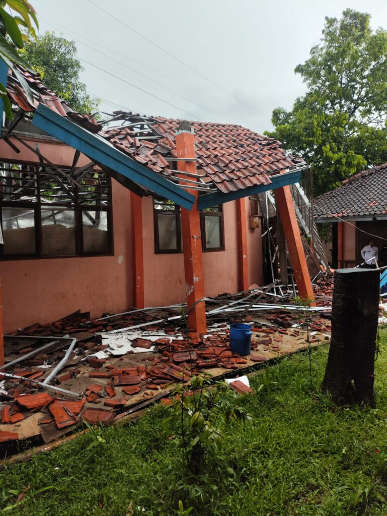 Berdasarkan video yang viral, terlihat beberapa bangunan sekolah mengalami kerusakan parah pada bagian atap. Genteng hancur berserakan akibat kejadian tersebut. Para siswa terlihat panik dan berlarian untuk menyelamatkan diri.
