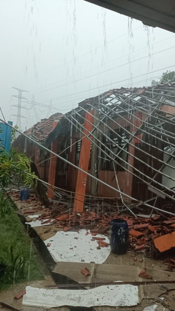 Insiden ambruknya bangunan SMKN 1 Gunung Putri diduga kuat dipicu oleh hujan deras disertai angin kencang yang menumbangkan dahan pohon besar dan menimpa atap ruang kelas. Kondisi bangunan yang sudah tua turut memperparah kerusakan hingga menyebabkan seluruh atap runtuh.***