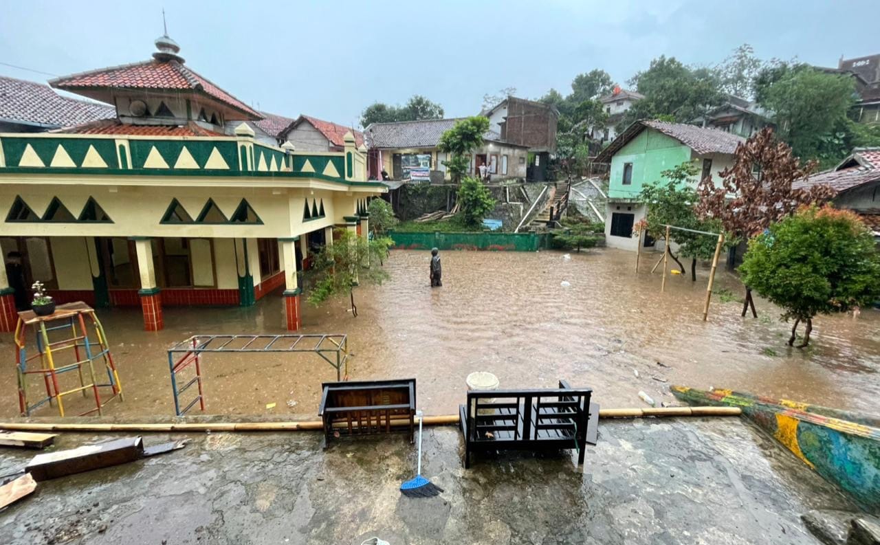 TERASJABAR.ID – Hujan dengan intensitas tinggi disertai puting beliung di Cicalengka, Kabupaten Bandung, selain pohon tumbang dan tiang listrik roboh, Pesantren Miftahul Jannah di Kampung Pacinan RT 02 RW 04, Desa Cicalengka Wetan, Kecamatan Cicalengka, Jumat (20/3/2026) sore. terendam banjir.