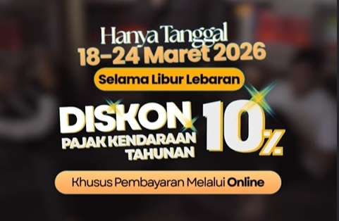 Mulai 18 Maret 2026 hingga 24 Maret 2026, masyarakat bisa mendapatkan diskon 10 persen untuk pembayaran pajak kendaraan bermotor tahunan, baik roda dua maupun empat.