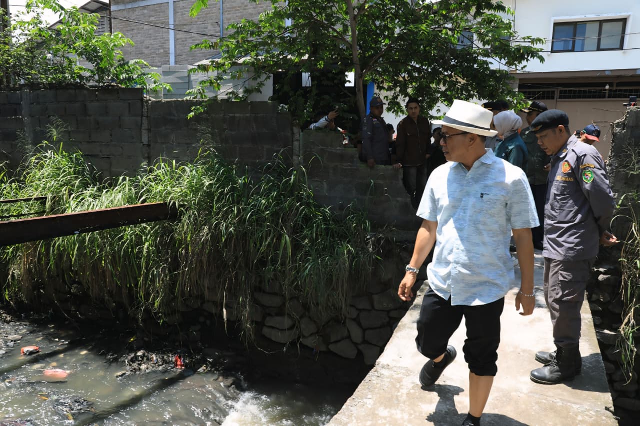 TERASJABAR.ID – Untuk kesekian kalinya Bupati Bandung Dadang Supriatna meninjau lokasi banjir di Kecamatan Margahayu, Sabtu (11/4/2026). Namun banjir di Desa Margahayu Tengah Kecamatan Margahayu yang terjadi pada Jumat (10/4) kali ini lebih diakibatkan jebolnya tanggul atau Tembok Penahan Tanah (TPT) di salah satu titik Sungai Cikahiyangan, yang disebabkan hujan deras disertai angin kencang. Banjir menyebabkan sekitar 150 rumah warga tergenang.