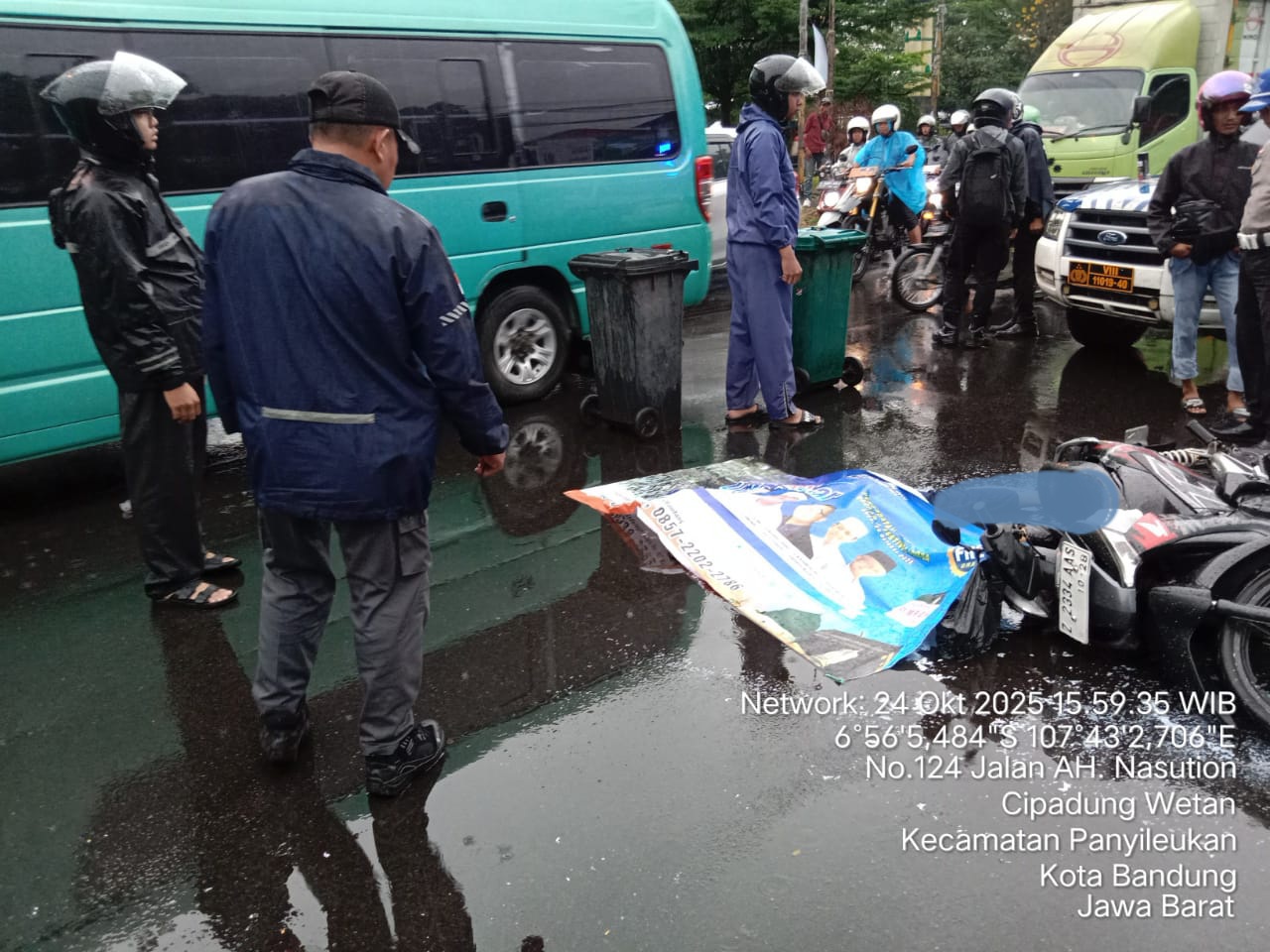 TERASJABAR.ID – Kecelakaan lalu lintas (laka lantas) melibatkan mobil minibus dengan sepeda motor di kawasan Bundaran Cibiru, Kecamatan Panyileukan, Kota Bandung, menyebabkan satu orang tewas, Jumat (24/10/2025) sore.