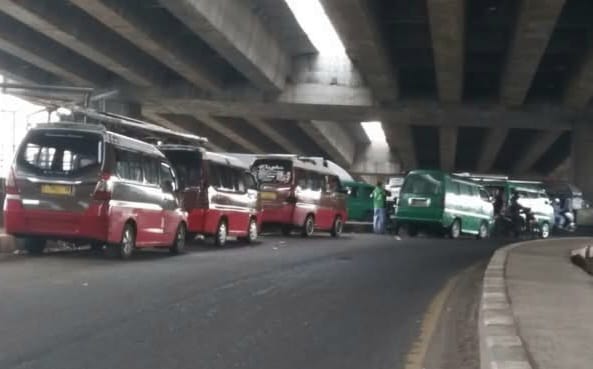 Angkot ngetem di kolong jembatan Tol Cisumdawu