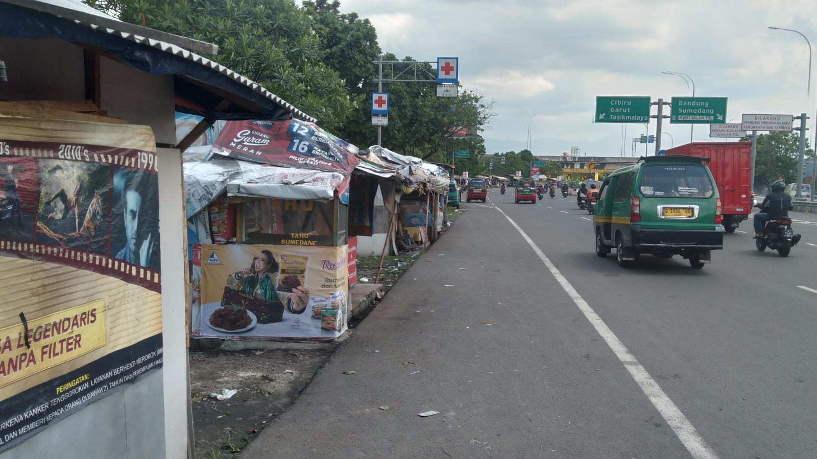 Warung liar berjejer di pinggir jalan Simpang Susun Cileunyi