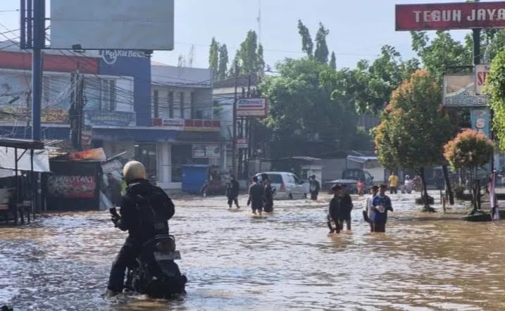 “Biasanya banjir normal tadi kebawa arus langsung mati di tengah-tengah jadi langsung didorong,” kata Gingin (34), seorang pemotor yang mogok ditemui di lokasi, Senin (3/11/2025) siang.