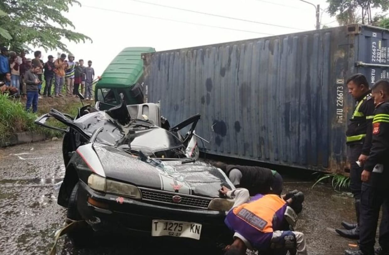 Lakalantas di Karawang, Truk Kontainer Timpa Sedan Toyota Corolla, Sekeluarga Tewas