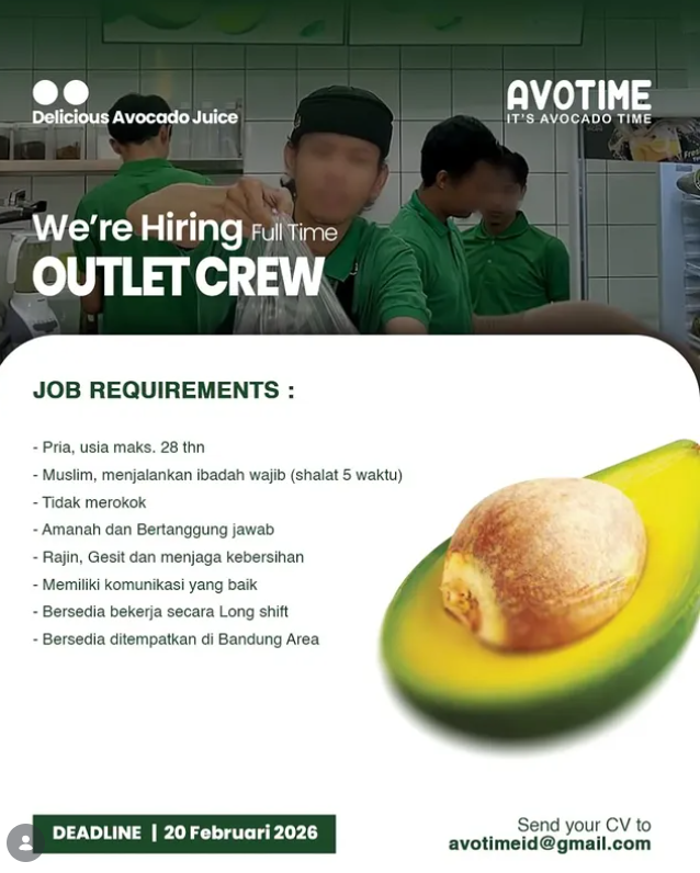 TERBARU! Avotime Bandung Buka Loker Posisi Outlet Crew