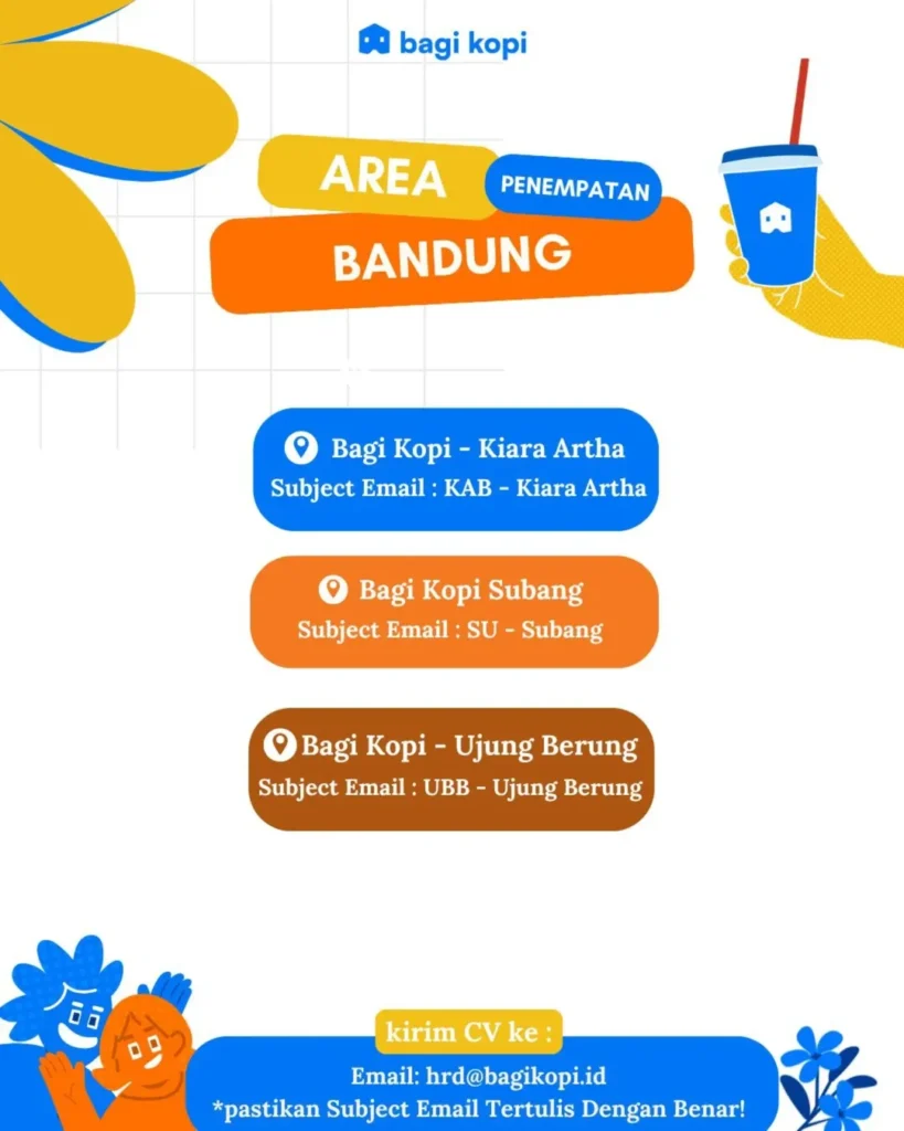 Sekarang, Bagi Kopi Bandung dan Jabodetabek sedang membuka lowongan kerja (loker) yang terbuka untuk tamatan SMA dan SMK.