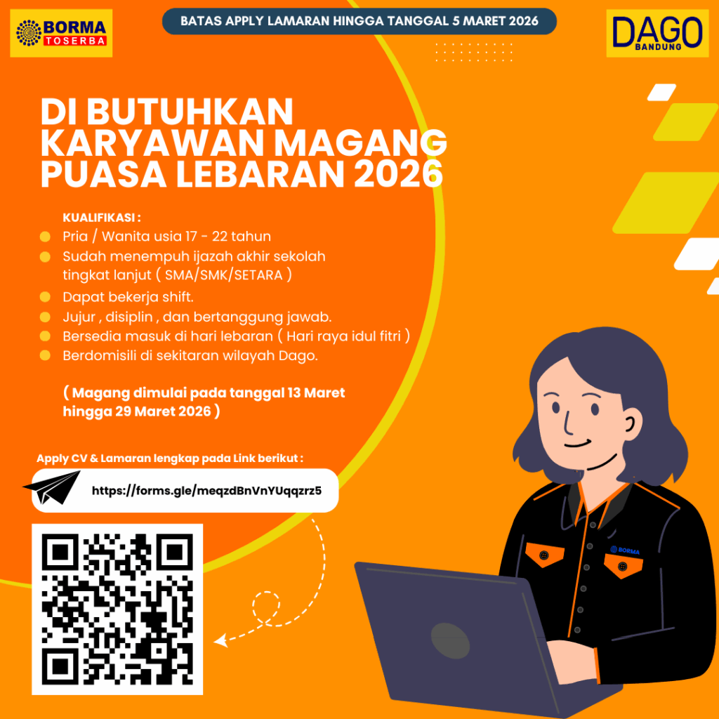 Dengan posisi sebagai Karyawan Magang, loker Borma Dago Bandung menjadi kesempatan emas untuk lulusan SMA dan SMK.