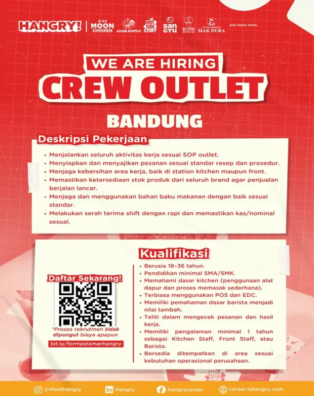 TERBARU! Hangry Bandung Buka Loker Crew Outlet Buat Lulusan SMA SMK