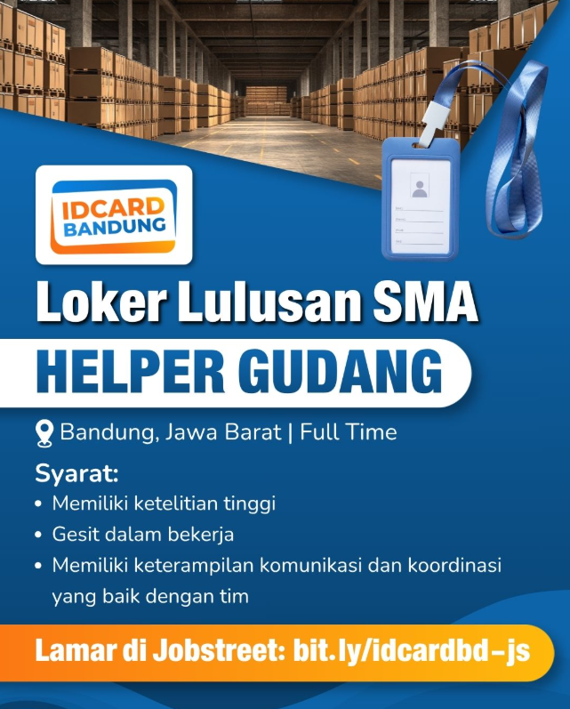 Pada saat ini, ID Card Bandung sedang membuka lowongan kerja (loker) yang menjadi kesempatan emas bagi lulusan SMA dan SMK.