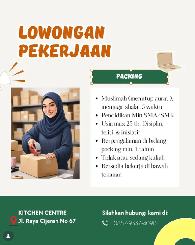 Dengan posisi sebagai Staff Packing, loker Kitchen 67 Bandung menjadi peluang yang harus dimanfaatkan oleh lulusan SMA dan SMK.