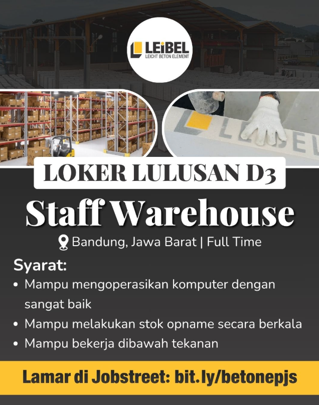 Sekarang, Leibel Bandung sedang membuka lowongan kerja (loker) yang terbuka untuk umum sebagai Staff Gudang.