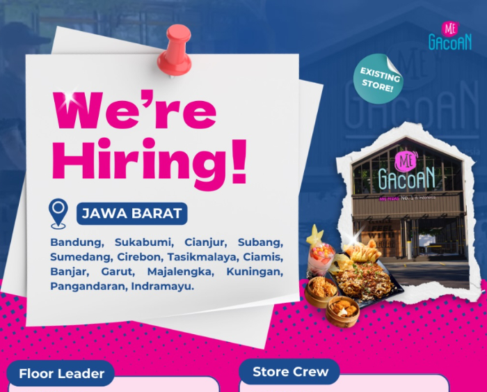 Sekarang, Mie Gacoan Jawa Barat sedang membuka lowongan kerja (loker) besar-besaran yang terbuka untuk lulusan SMA dan SMK.