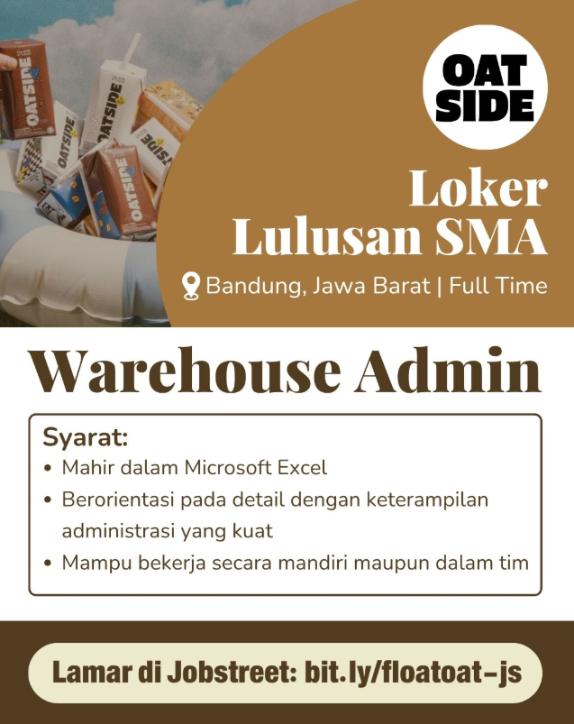 Dengan posisi sebagai Admin Gudang, loker Oat Side Bandung harus dimanfaatkan sebaik mungkin.