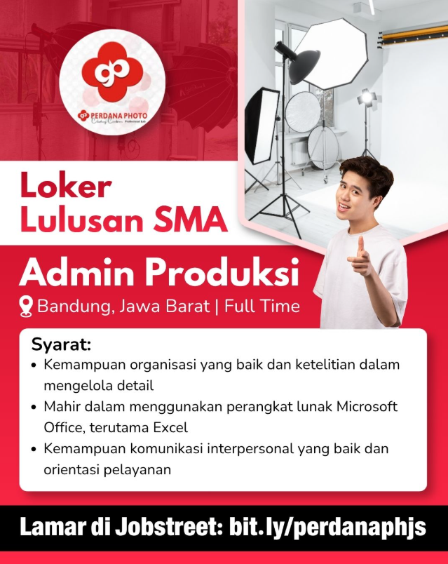 Sekarang, Perdana Photo Bandung sedang membuka lowongan kerja (loker) yang terbuka bagi tamatan SMA dan SMK.