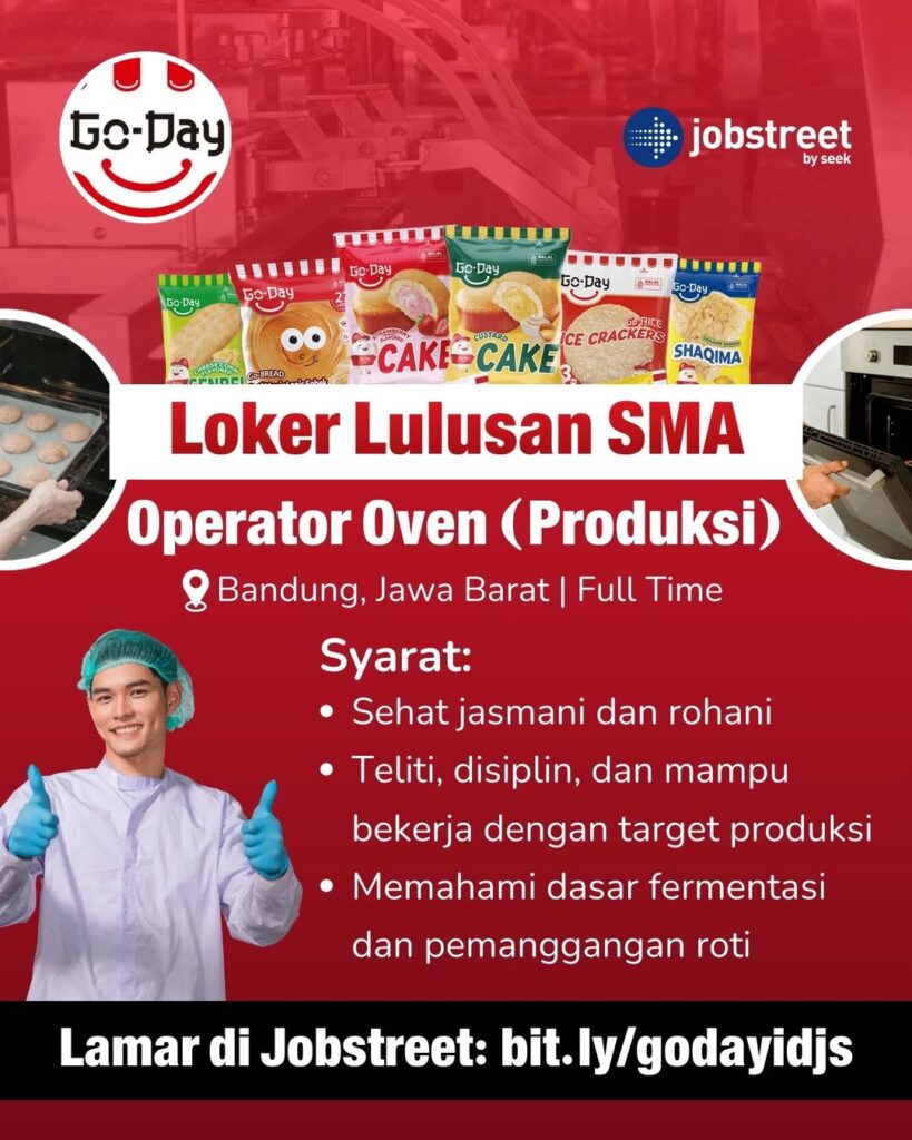 Dengan posisi sebagai Operator, loker PT Goday Indonesia Food harus dimanfaatkan sebaik mungkin oleh lulusan SMA dan SMK.
