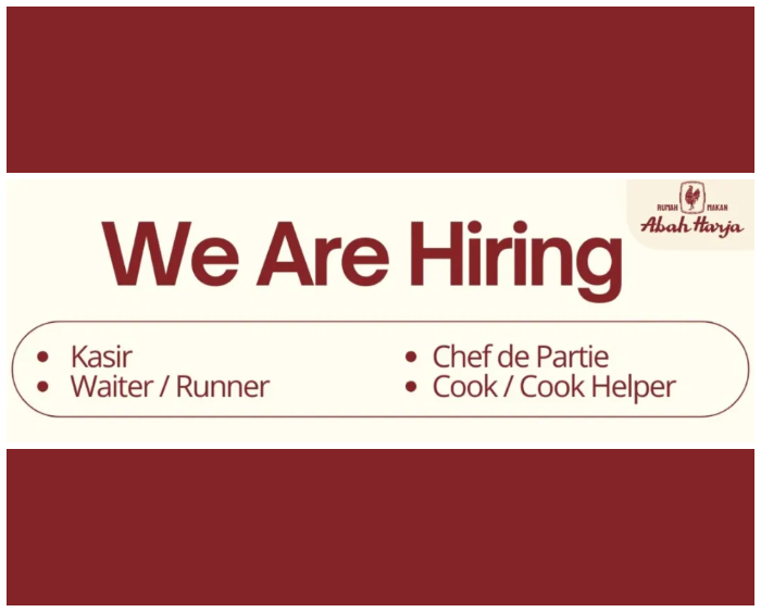 Pada saat ini, Rumah Makan Abah Harja Bandung tengah membuka lowongan kerja (loker) untuk tamatan SMK.