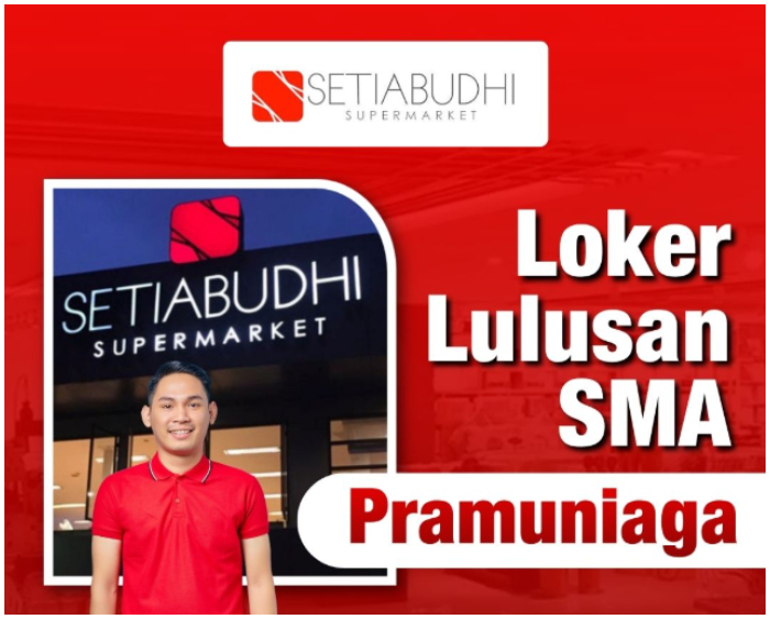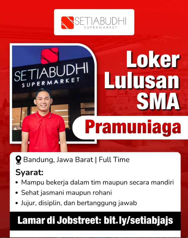 Setiabudhi Supermarket Bandung sedang menggelar lowongan kerja (loker) yang terbuka bagi lulusan SMA.