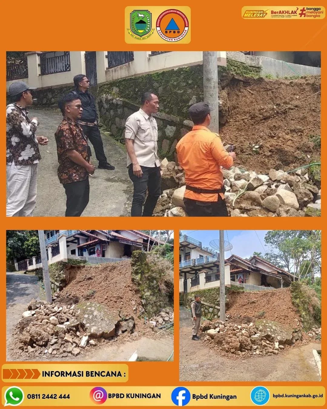 Sementara itu, Camat Hantara Kuningan M Reza, S.STP, M.Si, melaporkan, akibat guyuran Hujan Tebing Penahan Tanah (TPT) terjadi longsor di Dusun Cipeuteuy RT 005 RW 002 Desa Pakapasan Girang. Longsor TPT tersebut sepanjang 5 meter Tinggi 4 meter dan Lebar 30 cm. Longsor menimpa rumah milik Abah Jaya Diraksa (75), hingga bagian depan rumah tertimpa longsoran. Masih beruntung rumah yang dihuni 2 kepala keluarga dan 5 Jiwa itu selamat dari terjangan longsor.