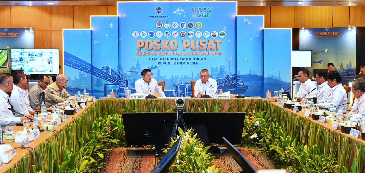 TERASJABAR.ID – Menteri Perhubungan (Menhub) Dudy Purwagandhi dan Sekretaris Kabinet (Seskab) Teddy Indra Wijaya mengunjungi Posko Pusat Angkutan Natal 2025 dan Tahun Baru 2026 (Nataru) di Kementerian Perhubungan, Jakarta.
