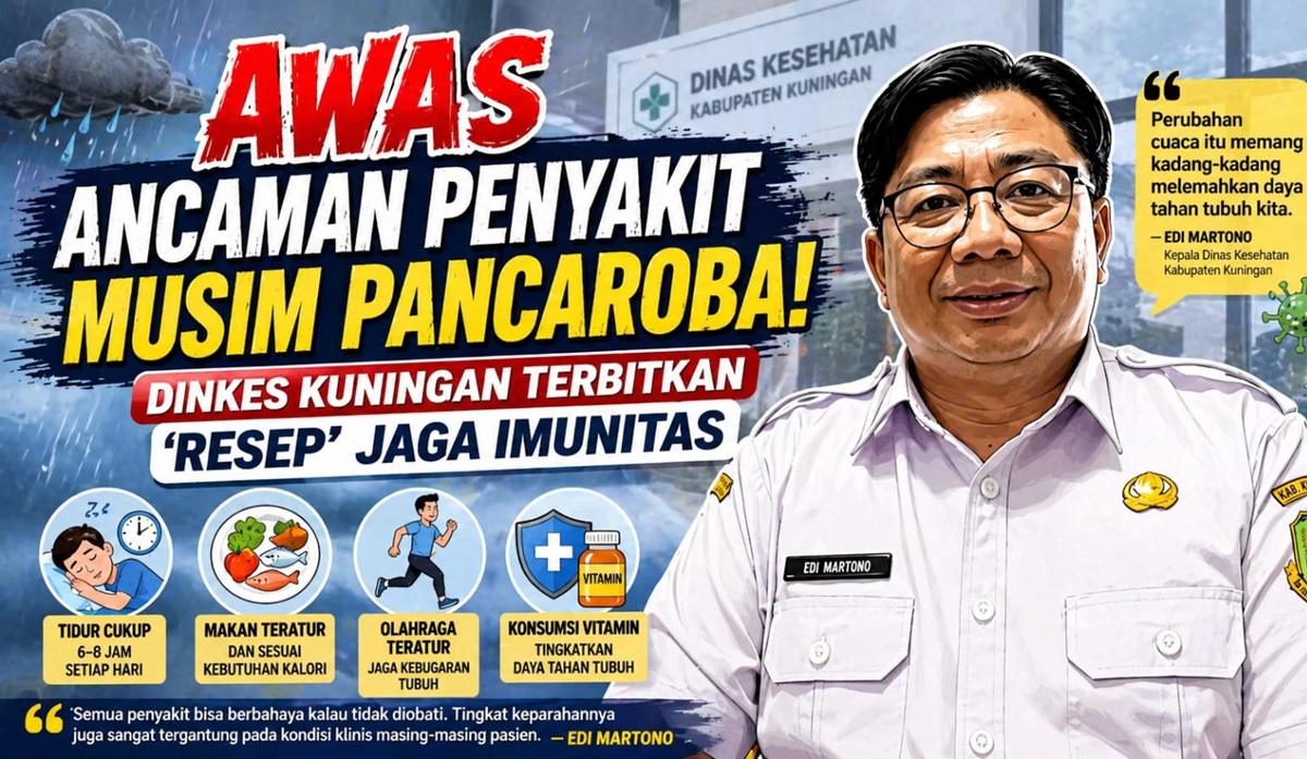 TERASJABAR.ID – Anomali cuaca akhir-akhir ini kerap berubah drastis dari panas terik menjadi hujan bersuhu dingin belakangan ini mulai memicu alarm kewaspadaan. Menyikapi hal tersebut, Dinas Kesehatan (Dinkes) Kabupaten Kuningan mengimbau masyarakat untuk segera memperkuat benteng pertahanan tubuh guna menangkal berbagai ancaman penyakit khas musim pancaroba.