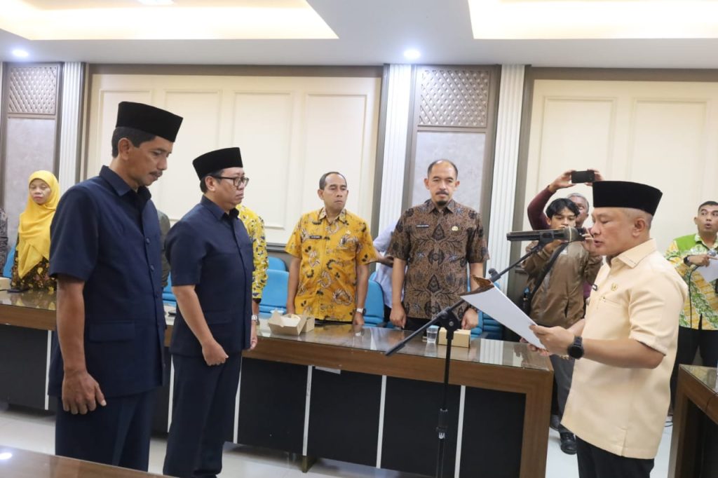 TERASJABAR.ID – Ondin Sutarman, S.IP, dan Dede Hamidin, ST, dikukuhkan menjadi Dewan Direksi Lembaga Penyiaran Publik Lokal (LPPL) Kab. Kuningan Periode 2025–2030, oleh Bupati Kuningan Dian Rachmat Yanuar. Pengukuhan dilakukan di Ruang Rapat, Setda Kuningan disaksikan Wakil Bupati Tuti Andriani, Dewan Pengawas LPPL, dan kepala perangkat daerah, Kamis (18/12/2925).