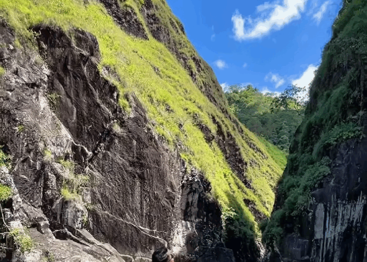 - Keindahan Kolam Alami dan Tebing Raksasa: Kolam alami dengan kedalaman sekitar 2-3 meter memiliki air yang sangat jernih, memungkinkan pengunjung melihat dasar kolam dengan jelas. Tebing-tebing tinggi yang mengapit kolam ditumbuhi lumut dan tanaman liar, menciptakan pemandangan dramatis yang cocok untuk fotografi.