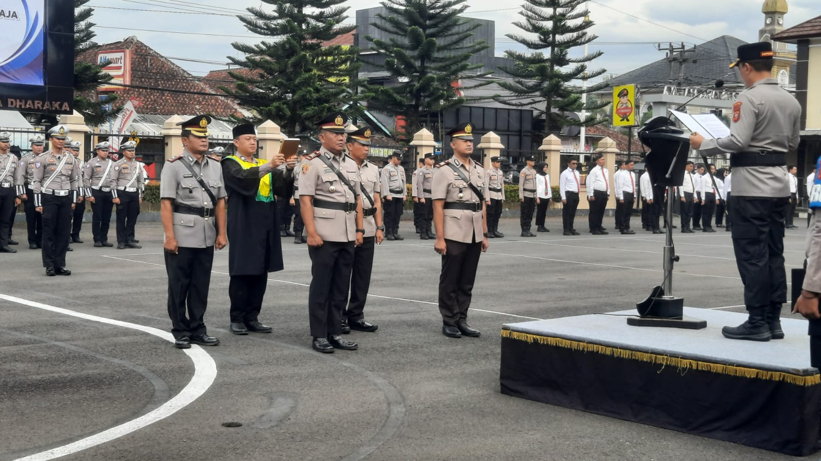 Kegiatan sertijab berlangsung di Lapangan Hitam Mapolres Tasikmalaya, Jalan Raya Mangunreja Kabupaten Tasikmalaya.