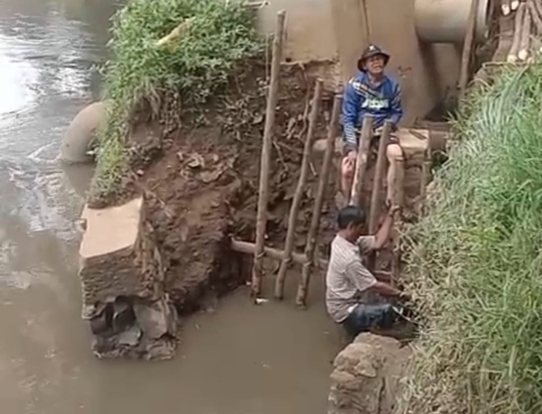 Menurutnya, sebelumnya Geobag sempat terpasang, namun akibat debit air yang sangat deras dari saluran Sungai Citarum, struktur tersebut mengalami kerusakan dan ambrol.