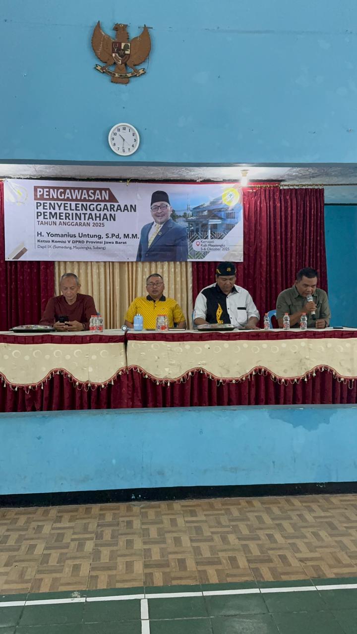 TERASJABAR.ID – Program dari Setwan DPRD Jawa Barat yang tadinya bernama Sosper (Sosialisasi Perda) kini berubah menjadi Pengawasan Penyelenggaraan Pemerintahan (PPP). Ketua Komisi V DPRD Jabar H. Yomanius Untung mengawali kegiatan PPP di hadapan 100 kader Partai Golkar se-Kec. Kertajati, Kab. Majalengka, Minggu (5/10).