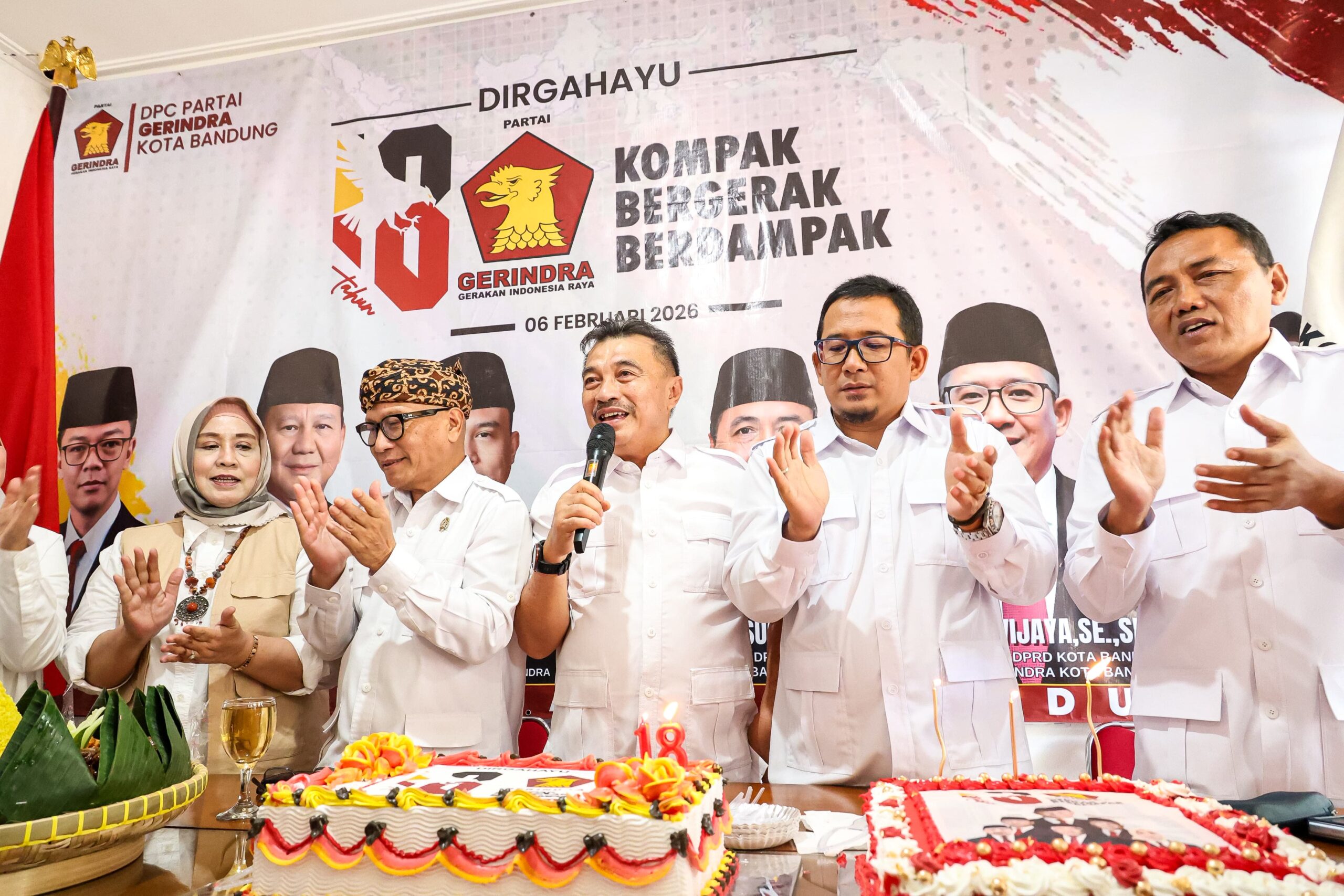 “Gerindra telah tumbuh, mengakar, dan semakin kuat. Di usia ke-18 ini kita bukan lagi partai yang mencari arah, tetapi satu tubuh, satu komando, dan satu tujuan untuk kesejahteraan warga Bandung,” tegas Toni.