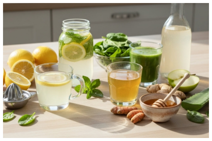 Teh jahe dan air lemon hangat dapat merangsang sistem pencernaan, sedangkan teh hijau dan minuman probiotik membantu menjaga kesehatan saluran cerna dari dalam.