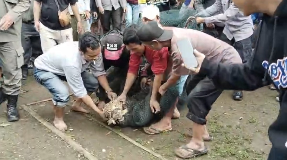 Macan Tutul muncul dan ditangkap di Pasar Maruyung Kecamatan Pacet
