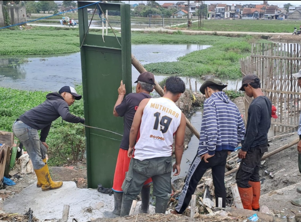 TERASJABAR – Panitia Pentahelix Penanganan Banjir Dayeuhkolot berkolaborasi dengan tokoh masyarakat (Tomas) dan Perhimpunan Remaja Masjid (PRIMA) melaksanakan pemasangan pintu air di Kampung Sukabirus, Desa Citeureup, Kecamatan Dayeuhkolot, Kamis (18/12/2025).