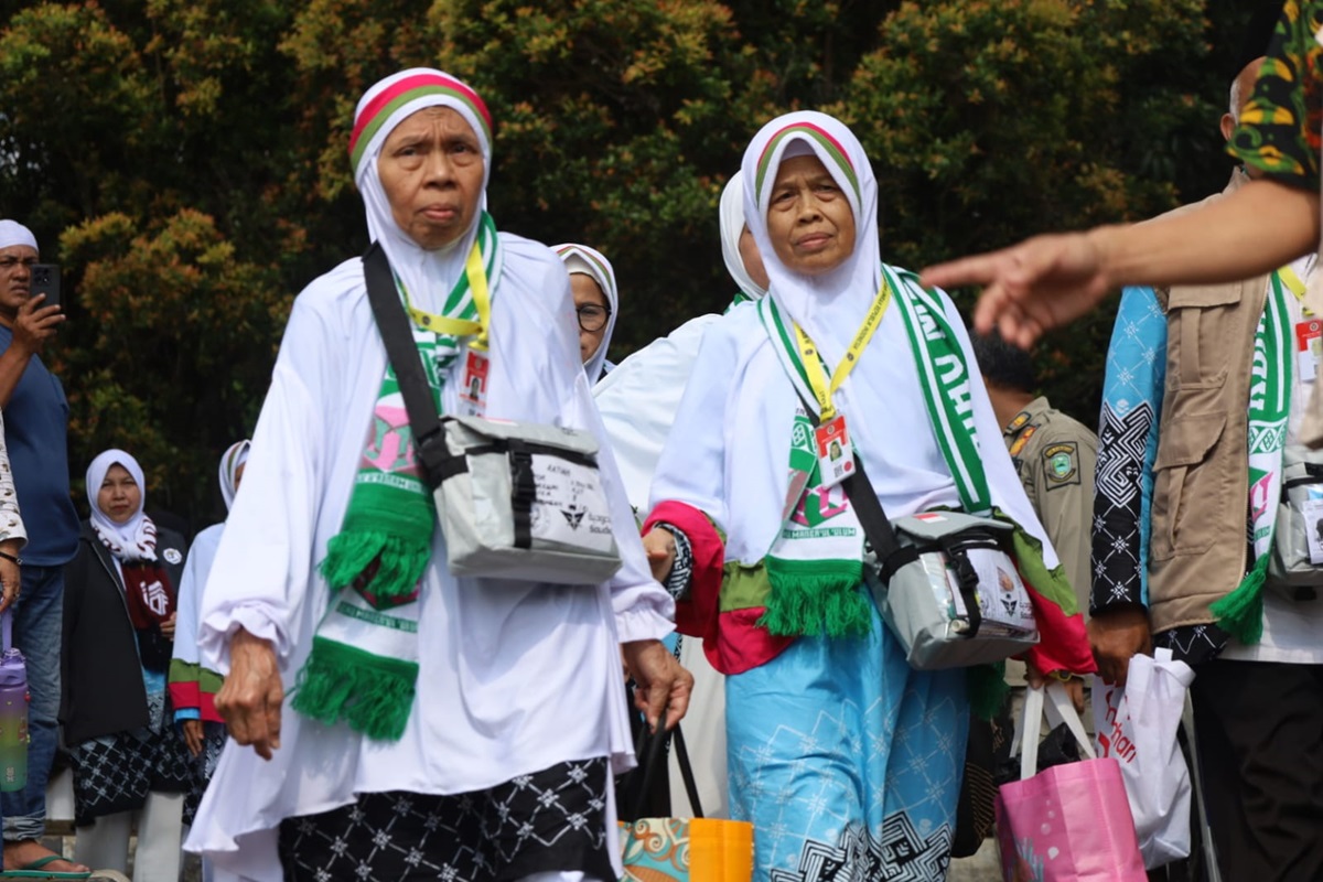 Demikianlah, Umi Puri Ahmad Musail (62) warga Dusun Puhun Desa Garawangi, Kab. Kuningan, dipastikan berangkat haji usai pelepasan 445 calon jemaah haji Kuningan Musim Haji 2026, di Kuningan Islamic Center Jl. Ir. Soekarno, Kuningan, Minggu (26/4/2026). Hari ini Senin (27/4/2026) Umi Puri bersama ratusan jemaah calon haji take off ke Tanah Suci Mekah
