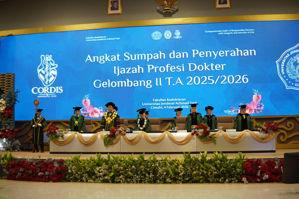 TERASJABAR.ID – Fakultas Kedokteran Universitas Jenderal Achmad Yani (FK Unjani) sukses menyelenggarakan acara Angkat Sumpah dan Penyerahan Ijazah Profesi Dokter Gelombang II Tahun Akademik 2025/2026 pada Rabu, 04 Februari 2026, di Gedung Auditorium Unjani.