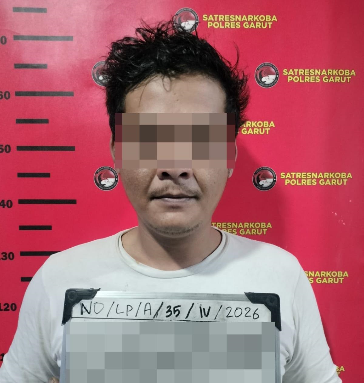 Pelaku berinisial CP (33), warga Kecamatan Cilawu, dibekuk satnarkoba Polres Garut, Kamis(1642026). (FotoKasat Narkoba Polres Garut)